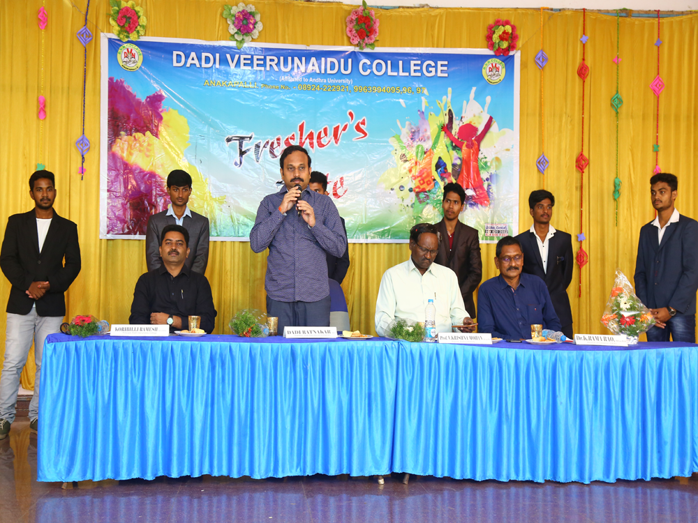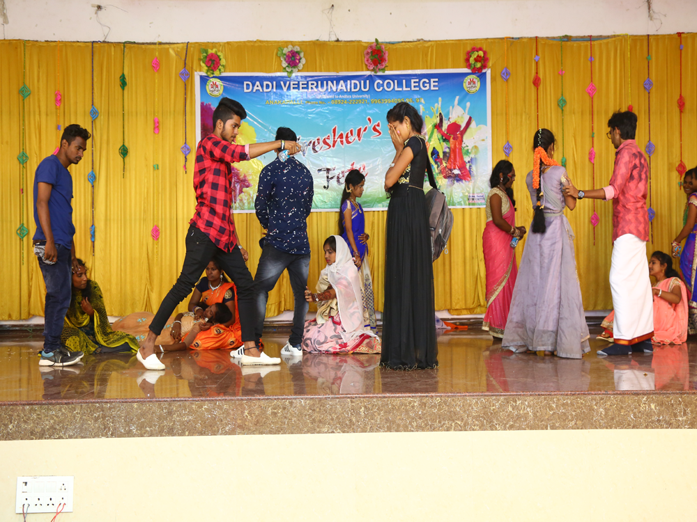 Dadi Veerunaidu Degree College organized a resplendent fresher’s party for the batch 2019 -22 on 7th September 2019 at Raithu Bharathi AC function hall. The dress code for the Fresher’s party was a RED colour for Fresher’s. The celebration started at 10:00 am with the Prayer song by Ananda Geethika, IInd year followed by the welcome speech by K.Manasa IIIrd year.