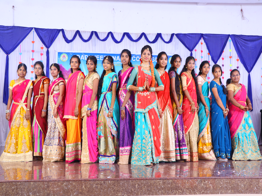 The Chief Guests for the day Sri. Dadi Ratnakar, Hon’ble Chairman, Prof.V.Krishna Mohan, Registrar, Andhra University, Dr. K.Rama Rao, HOD,(Retd.) Dept. of Commerce, AMAL College, K.Ramesh, Principal, Smt. S.Daya Madhuri, Vice Principal, All HODs, staff, junior & senior students participated in the event. Advices given to Juniors by Seniors D.Jyothika, IIIrd year. Response from Juniors Kum. Chaitanya Lakshmi & Ch.Syamala from Ist years. Our Management encouraged with Cash Prize awards to all merit students.